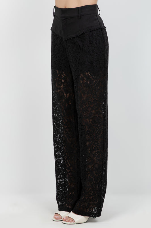WOVEN LACE COMBO STRAIGHT LEG TROUSERS