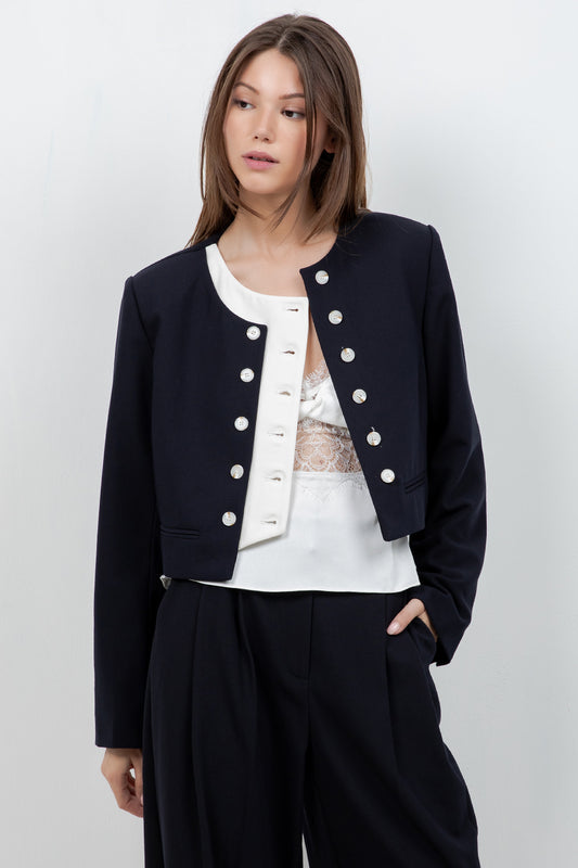 SOFT WOVEN DOUBLE PLACKET JACKET (NAVY/IVORY)