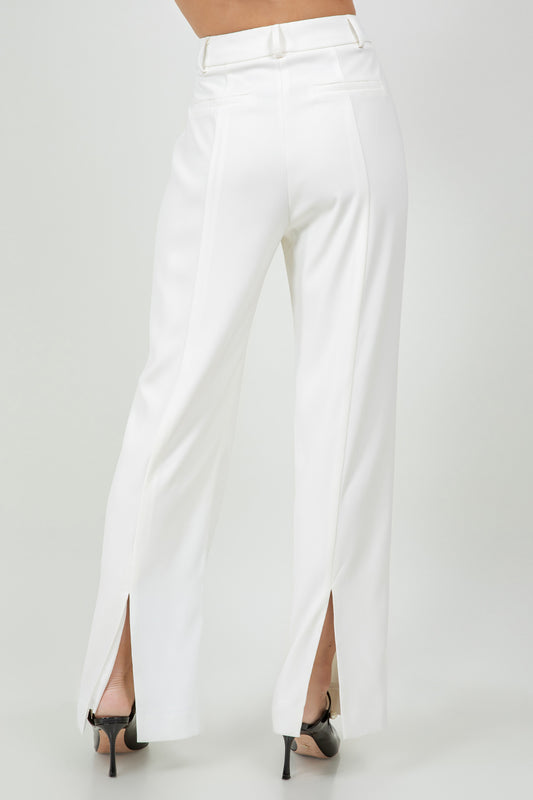 STRAIGHT LEG SOFT WOVEN TROUSERS W BACK SLIT - WHITE