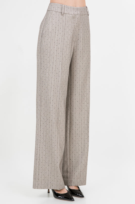 RHINESTONE EMBOSSED PINSTRIPE STRAIGHT LEG TROUSERS - TAUPE