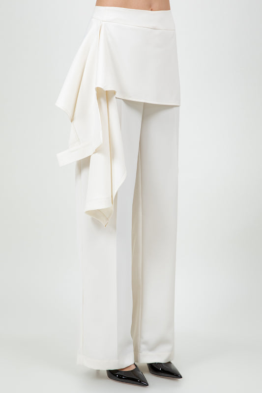 DOUBLE LAYER FAUX SKIRT PANTS - ECRU