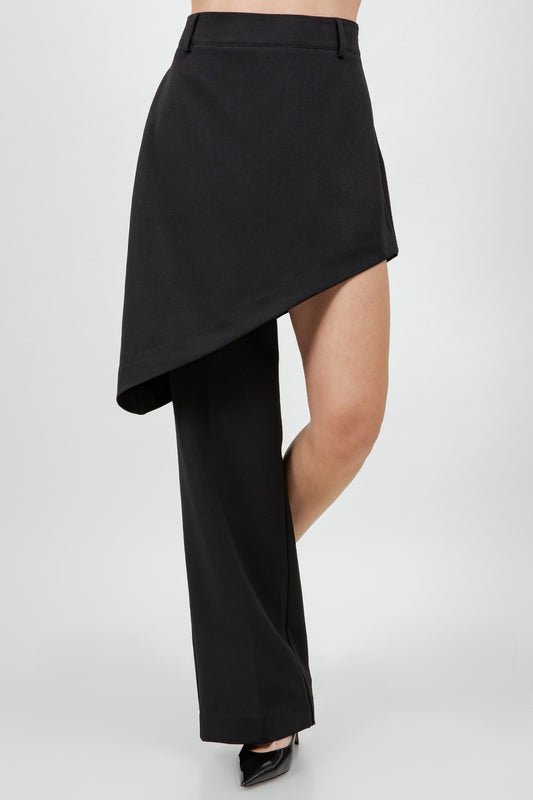 SINGLE LEG FAUX SKIRT OVERLAYER TROUSER PANTS - BLACK
