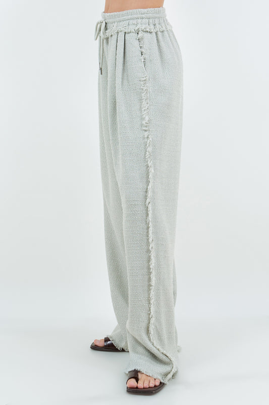 WIDE LEG JOGGER STYLE SOFT TWEED PANTS - DK SAGE