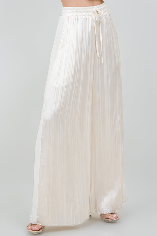 FLOWY SATIN CRINKLE DRAWSTRING PANTS - ECRU