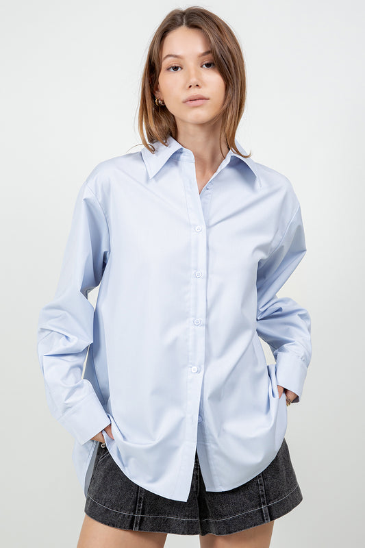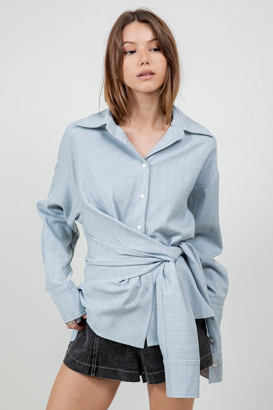 STRIPED WRAP DETAILED BUTTON DOWN SHIRT - LT BLUE