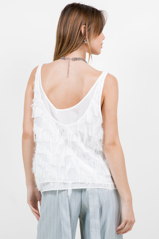 TEXTURED FRINGE DOUBLE LAYER TANK TOP - WHITE