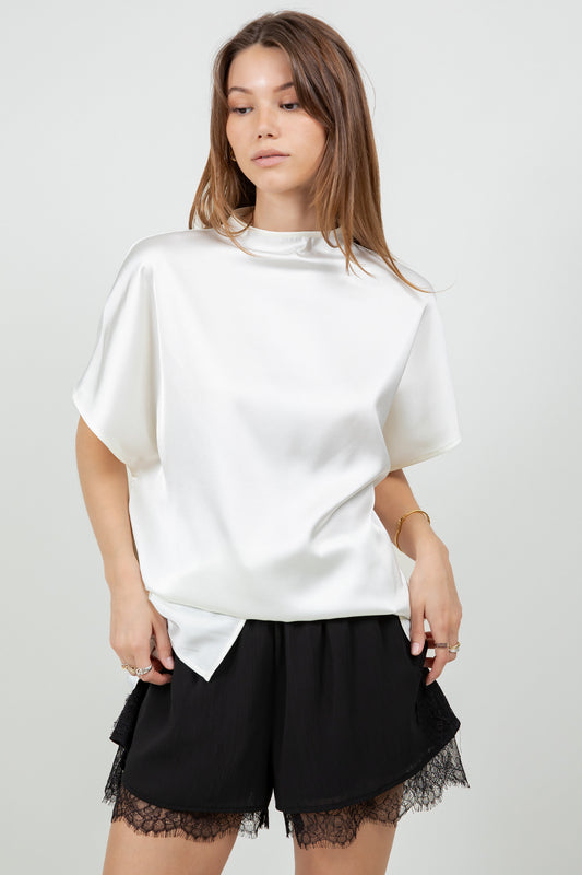 MINI COWL NECK SATIN SHIRT BLOUSE - IVORY