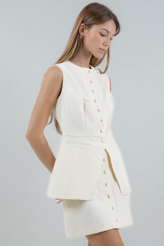 STRUCTURED WOVEN SLEEVELESS BUTTON DOWN TOP - EGGSHELL