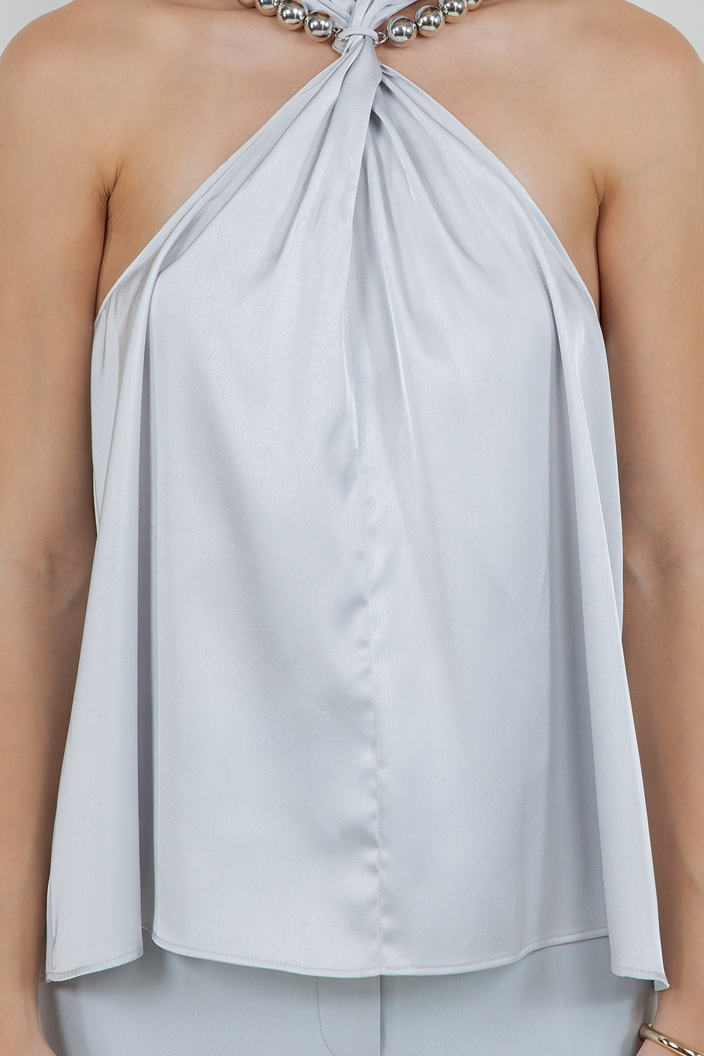 HALTER NECK SATIN TANK TOP WITH METALLIC SILVER BEADING ACCENT